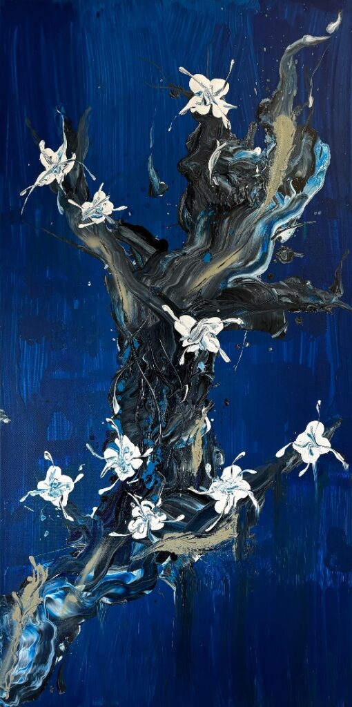 "התחלתי לצייר במהלך מגפת הקורונה. בתקופה הזו היה לי סטודיו/חנות בנווה צדק, והעסק שלי פרח. אני תמיד עובדת לבד, והתכשיטים והפסלים שלי עשויים כולם בעבודת יד. אני אוהבת להרגיש את המתכת בידיים ובאצבעות; אני מאמינה שזו הדרך שבה היצירות שלי סופגות את הנשמה שלי, את חום גופי, ואת פעימות הלב שלי. כך גם הלקוחות שלי מתחברים אלי ואל היצירות שאני מביאה לעולם. אבל אז, הסגר של הקורונה עצר את כל זה. אנשים היו סגורים בבתיהם, והתכשיטים הפסיקו להיות פריט רצוי עבורם. הימים הפכו לאפורים, מלאים בחוסר ודאות לגבי העתיד, ואני מצאתי את עצמי נואשת לצבעים שמחים סביבי. רציתי לשנות את הנוף, לשנות את mood, ובאופן כללי, לשנות את העולם. ברגע שחוויתי את החופש הראשון מהסגר, נסעתי מיד לחנות שמכרה צבעים וקנבסים ורכשתי המון. מעולם לא ידעתי שאני יכולה לצייר; פשוט רציתי לבטא את הרגשות שסערו בתוכי – או אולי לעורר רגשות אצל מי שיתבונן בעבודותיי. אז אני מניחה שההשראה שלי נובעת מהרצון הזה: להוציא את הרגשות של אנשים החוצה. זו מסע שאני נרגשת להיות בו, ואני מקווה שהאמנות שלי תוכל לרגש את אחרים כפי שהיא ריגשה אותי".