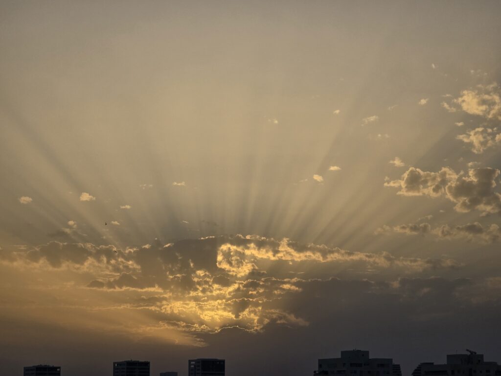 הַשֶּׁמֶשׁ מִתְאַמֶּצֶת לְהַרְאוֹת פָּנֶיהָ,